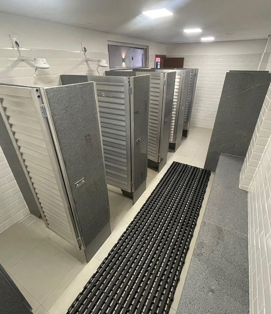 A sala do nosso tatame é ampla, bem iluminada e ventilada. Os vestiários são modernos, limpos e organizados, e nossa recepção é o lugar perfeito de espera para alunos, pais e acompanhantes.